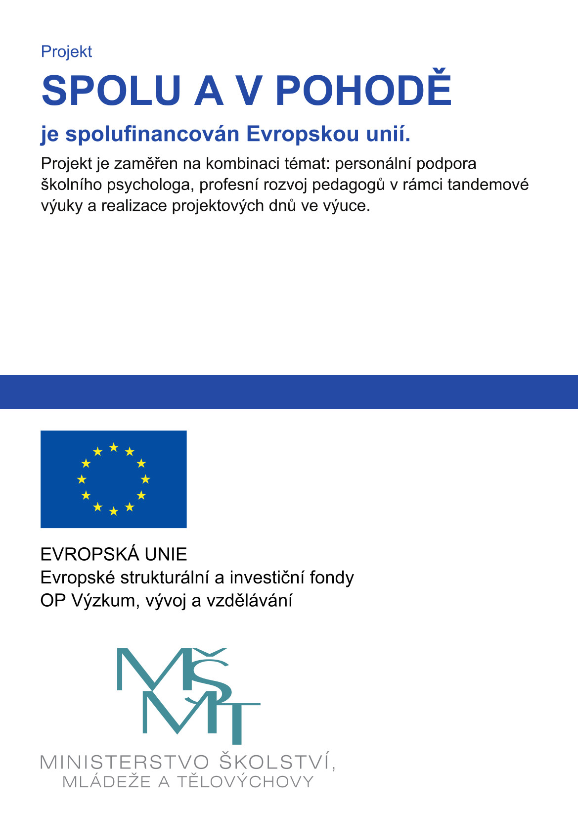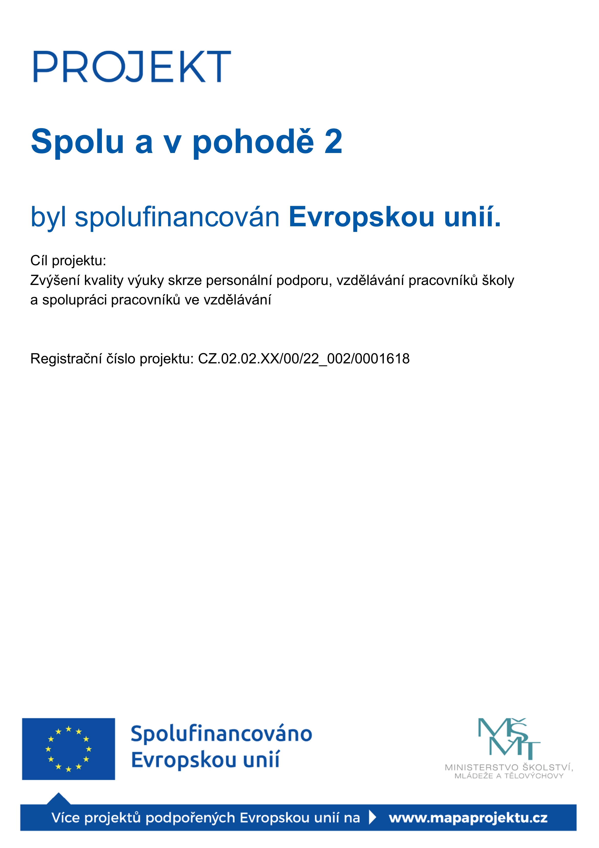 Ve škole realizujeme individuální a skupinové hodiny doučování u žáků ohrožených školním neúspěchem i v důsledku pandemie Covid. Projekt je financován Evropskou unií – Next Generation EU.